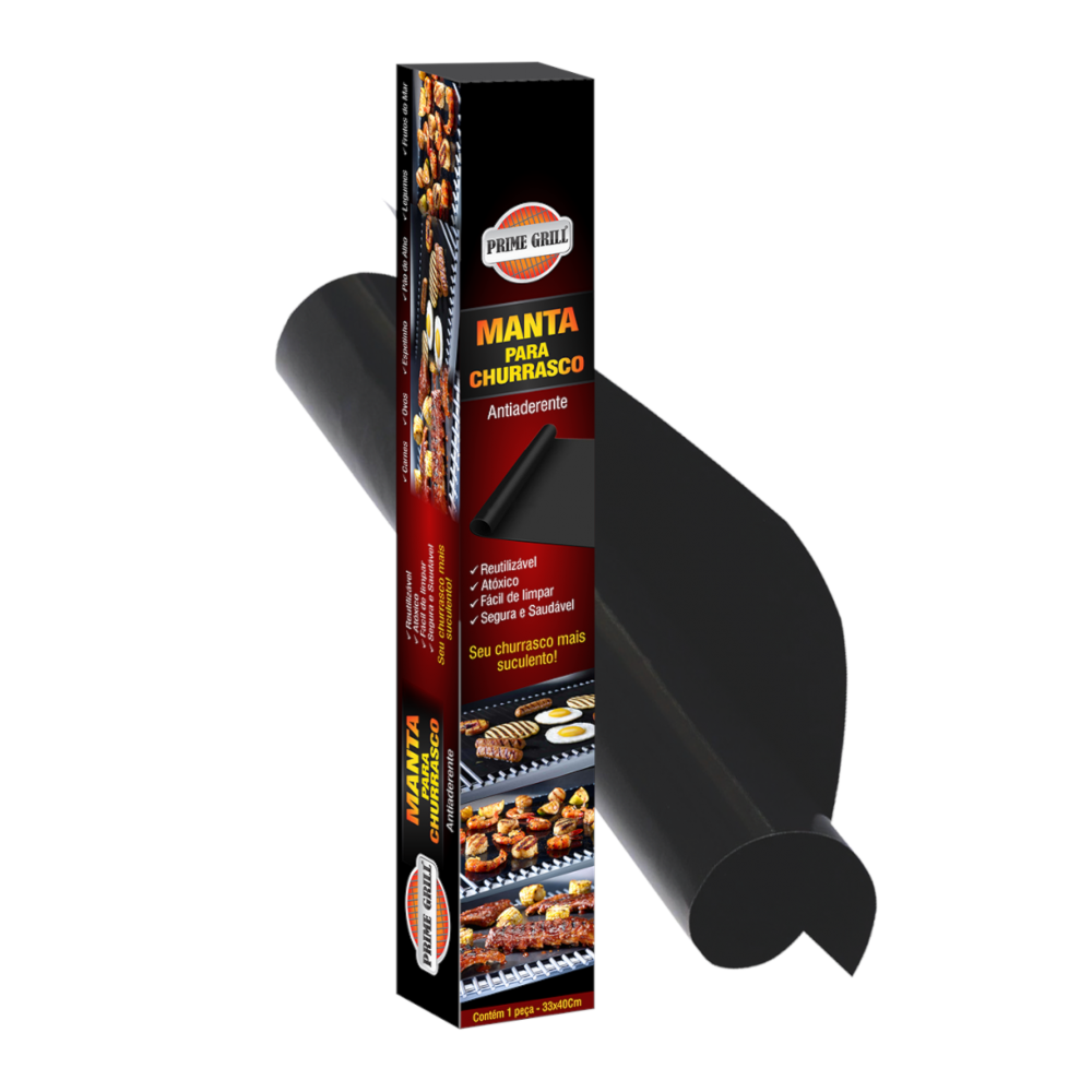 A Manta para Churrasco Prime Grill funciona como uma chapa, pois resiste a temperatura ate´ 260 graus. Pode ser colocada diretamente sobre a grelha de churrasqueiras e em apenas alguns segundos estara´ aquecida e pronta para grelhar os mais diversos tipos de alimentos. A Manta para Churrasco Prime Grill também pode ser utilizada em formas, assadeiras, panelas e ate´ sobre chapas de metal para adquirir uma protec¸a~o antiaderente. Ela e´ leve e malea´vel, pode ser armazenada enrolada otimizando espac¸o entre os acesso´rios de sua cozinha e churrasqueira.