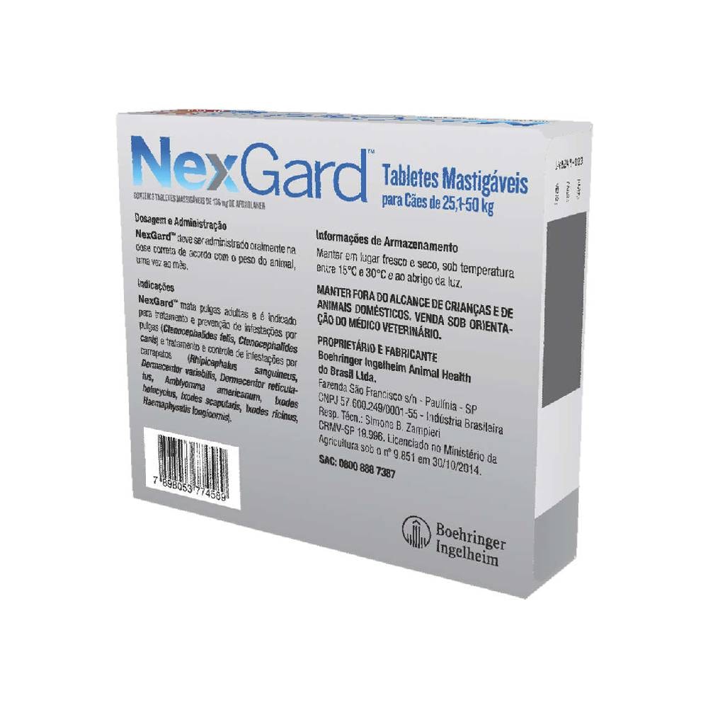 NexGard Antipulgas e Carrapatos para Cães de 25,1 a 50 Kg - 3 Tabletes