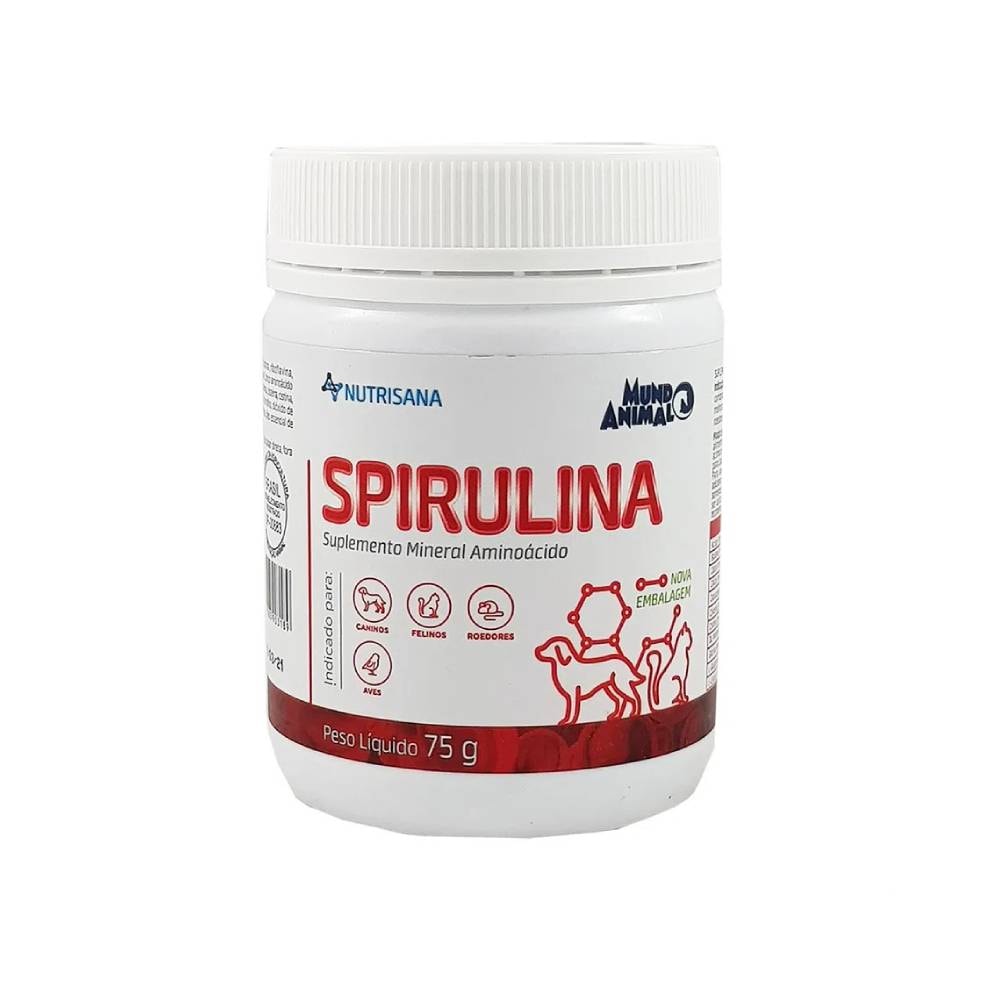 Contém ainda nutrientes como as vitaminas, B6, B12 e E, fibras, aminoácidos essenciais, ácidos graxos poliinsaturados, entre outros. Aplicação O suplemento Nutrisana Spirulina deve ser combinado com a alimentação normal do animal.