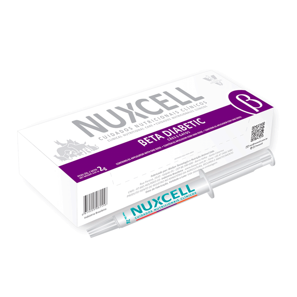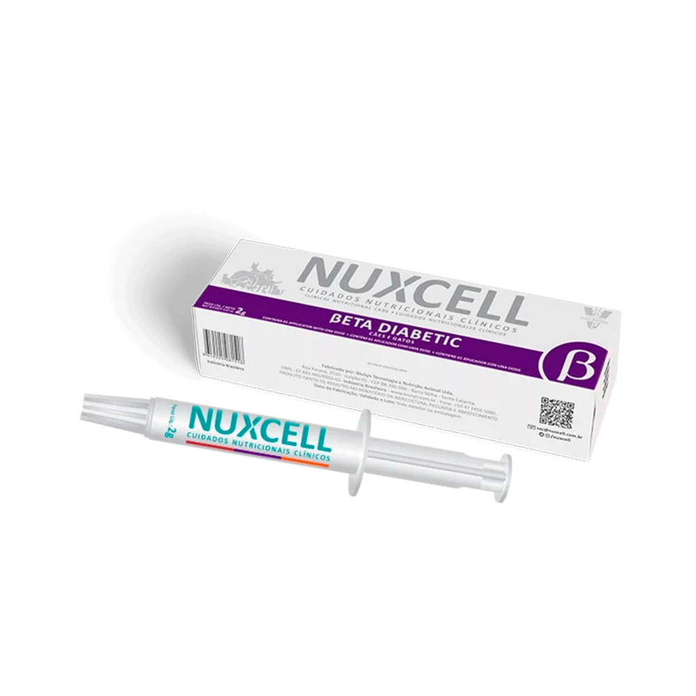NUXCELL ßeta Diabetic é um suplemento alimentar desenvolvido especialmente para cães e gatos em tratamento ou com predisposição ao desenvolvimento de diabetes. Sua fórmula exclusiva fornece suporte nutricional para auxiliar na regulação dos níveis de glicose, melhorar a sensibilidade à insulina e fortalecer o sistema imunológico, com benefícios também para a saúde intestinal e o controle de peso.