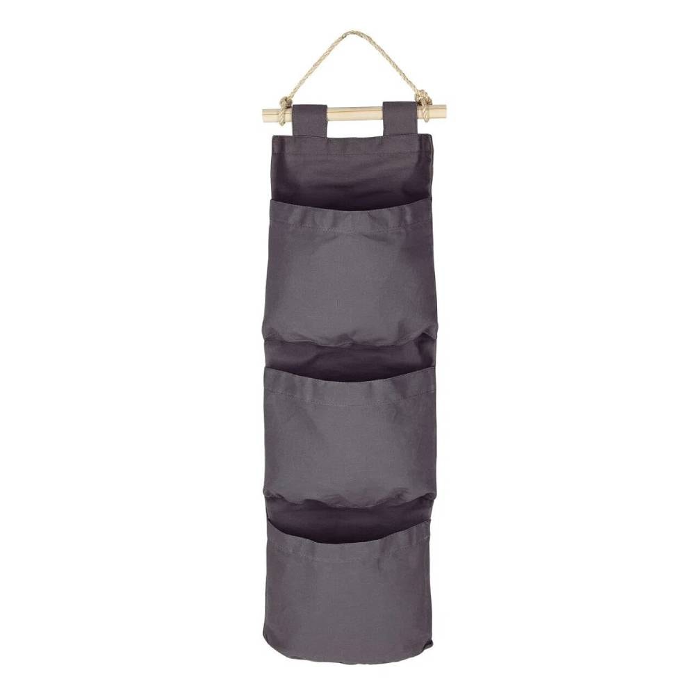 Detalhes do Produto Para deixar sua casa em ordem e cheio de estilo, conte com o organizador Tramontina em lona cinza com 3 bolsos e borda para pendurar. Perfeito para colocar livros, brinquedos ou até mesmo calçados, ele tem três bolsos que suportam dois quilos cada e corda de sisal para pendurá-los, seja na porta ou na parede do seu cômodo. Ele é produzido em lona 100% algodão e vai garantir maior praticidade na arrumação de sua casa!