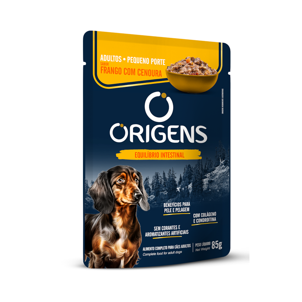 Origens Sachês é uma linha premium especial de alimentos úmidos que eleva o padrão de qualidade em cada refeição. Completos e balanceados, esses sachês são formulados com ingredientes selecionados, como carnes frescas e vegetais, proporcionando uma alta palatabilidade e um ótimo aproveitamento dos nutrientes. Disponíveis em uma variedade de sabores, incluindo carne e frango, Origens Sachês oferece opções que atendem às diferentes necessidades, como idade e porte, do seu cãozinho. Mime seu companheiro com o cuidado e o sabor excepcionais de Origens Sachês e transforme cada refeição em um momento de prazer e nutrição.