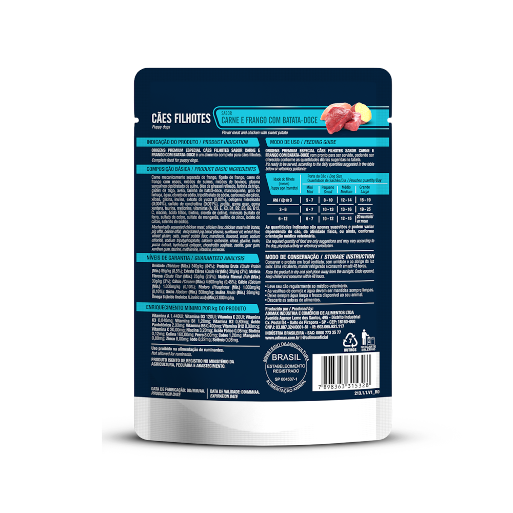 Proporcione uma nutrição excepcional para o seu filhote com Origens Premium Especial para Cães Filhotes, sabor carne e frango com batata-doce. Este alimento úmido completo é especialmente formulado para atender às necessidades específicas dos filhotes em crescimento, garantindo uma dieta balanceada e deliciosa desde tenra idade. Livre de corantes e aromatizantes artificiais, este alimento promove benefícios para a pele e pelagem do seu filhote, deixando-o com uma aparência saudável e brilhante. Sua fórmula exclusiva também contribui para o equilíbrio intestinal, garantindo uma digestão suave e eficaz. Enriquecido com colágeno e condroitina, este alimento promove o desenvolvimento saudável das articulações, ajudando seu filhote a crescer forte e ativo.