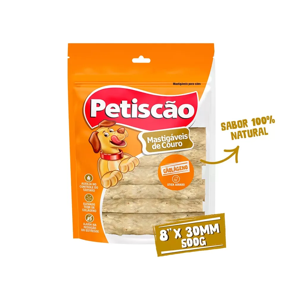 Dê ao seu cão o presente da saúde, diversão e sabor com o Osso Petiscão Cãolageno Stick 8" 30mm 500g!