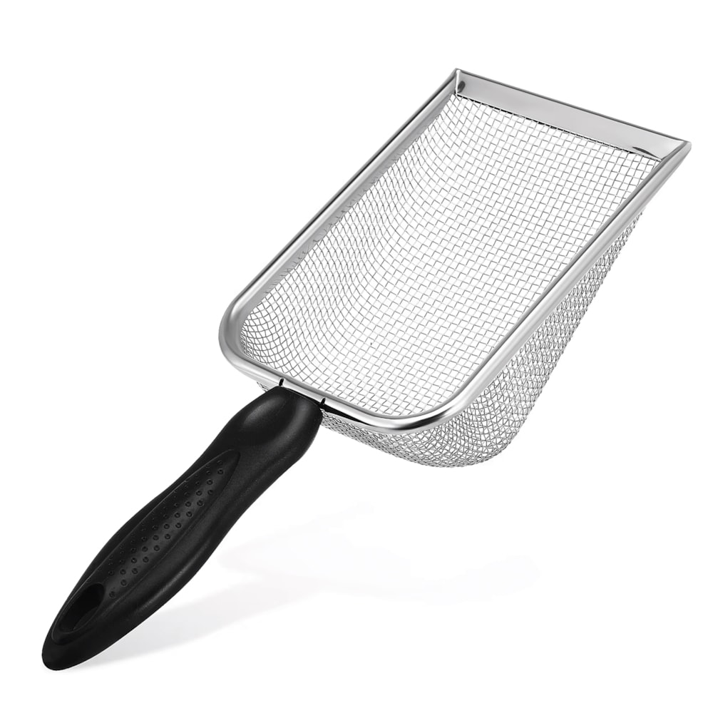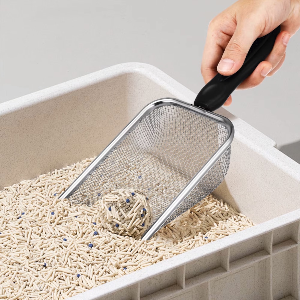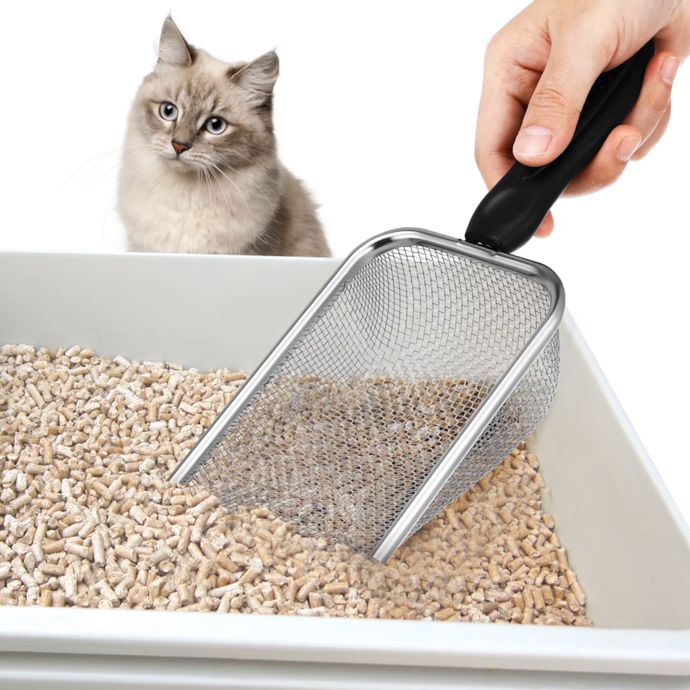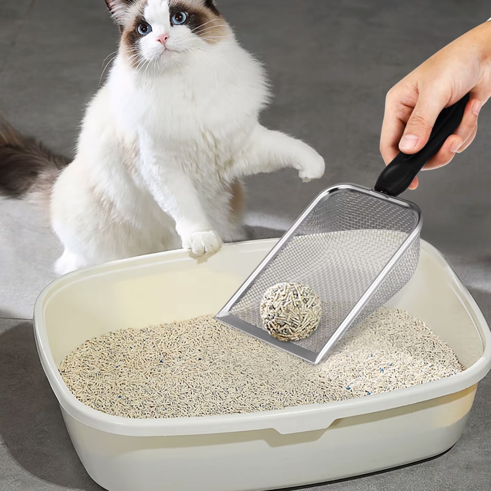 Pá de Areia para Gatos em Aço Inoxidável - Colher Peneira com Furos Pequenos para Limpeza Eficiente da Caixa de Areia