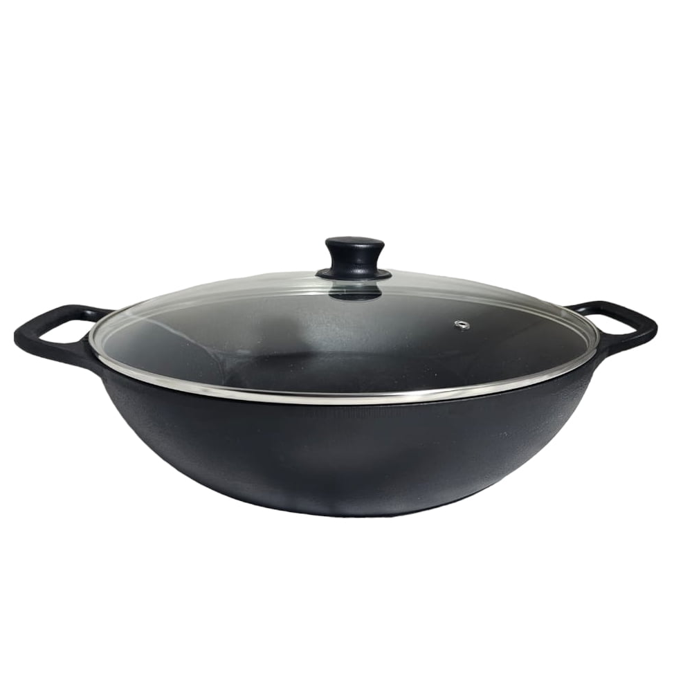 Panela de Ferro Wok com Tampa de Vidro Fundição Libaneza 934981