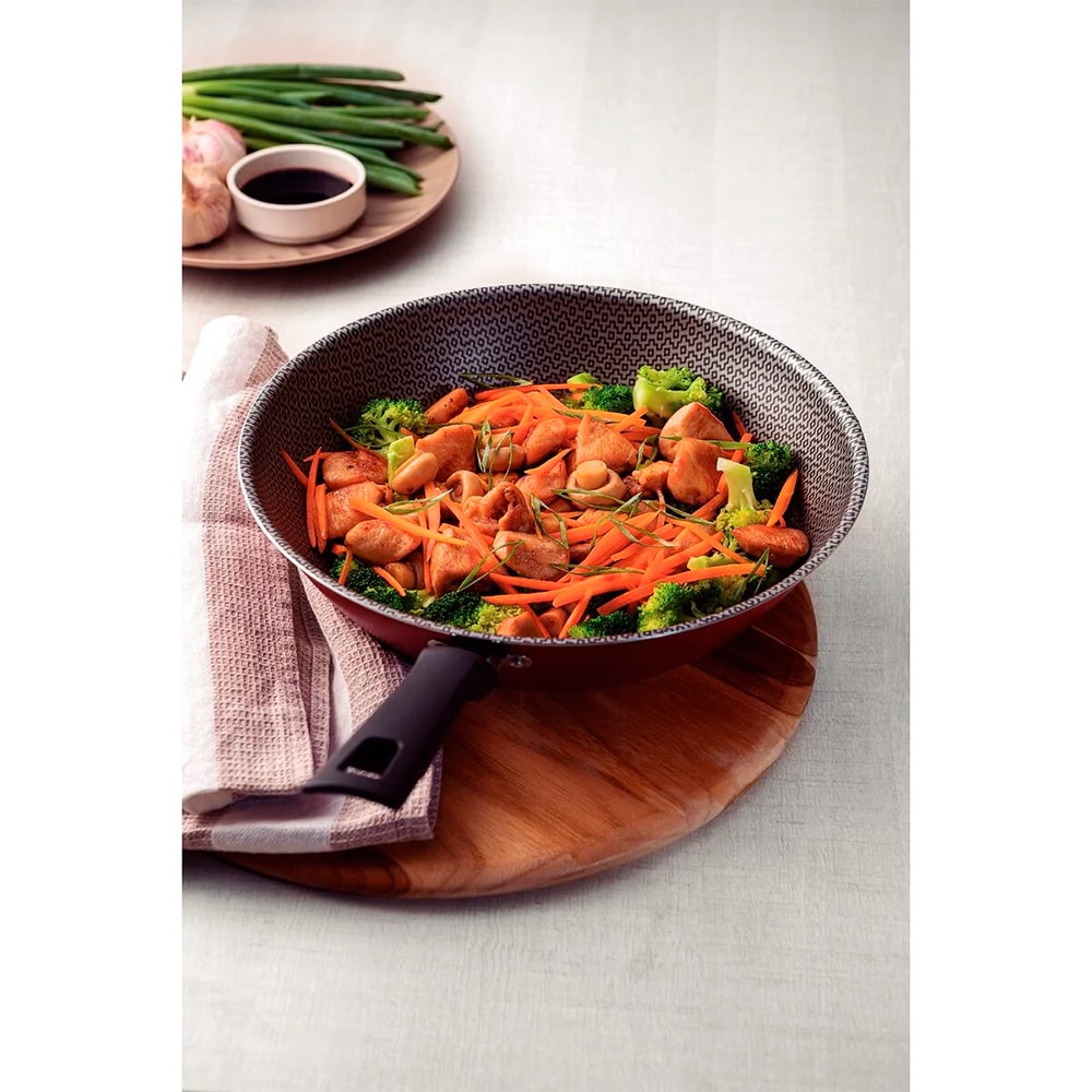 Corpo de alumínio com espessura de 1,4 mm que proporciona cozimento rápido e uniforme.