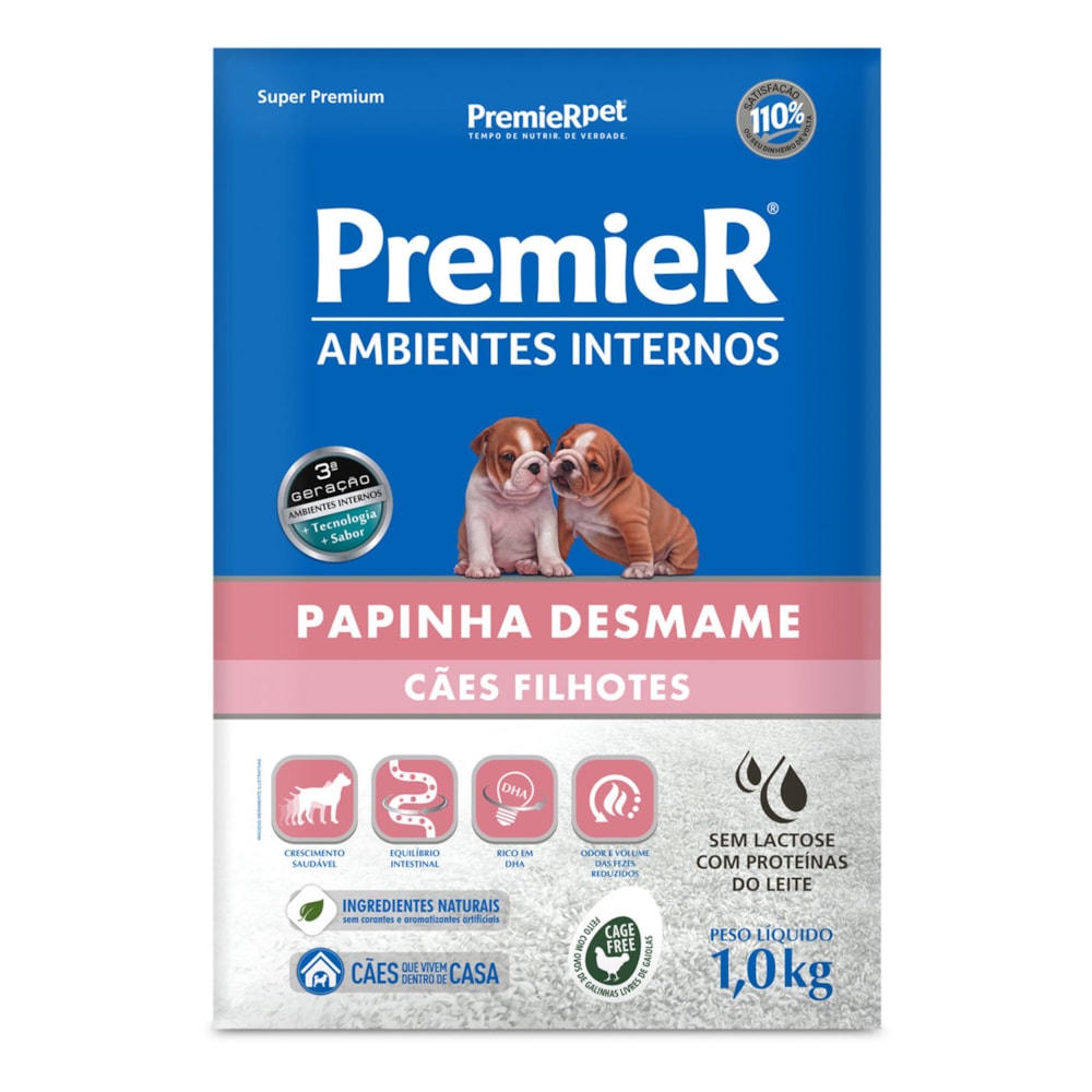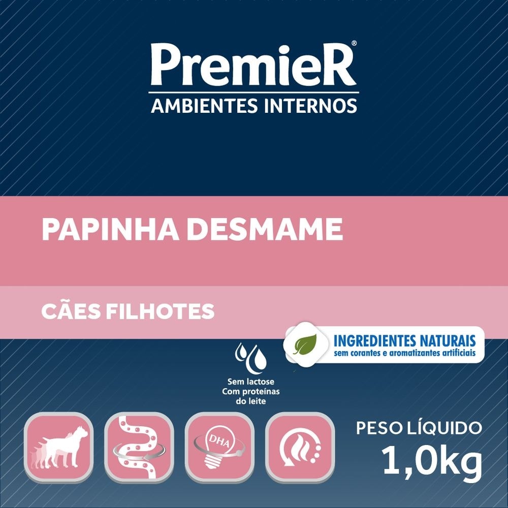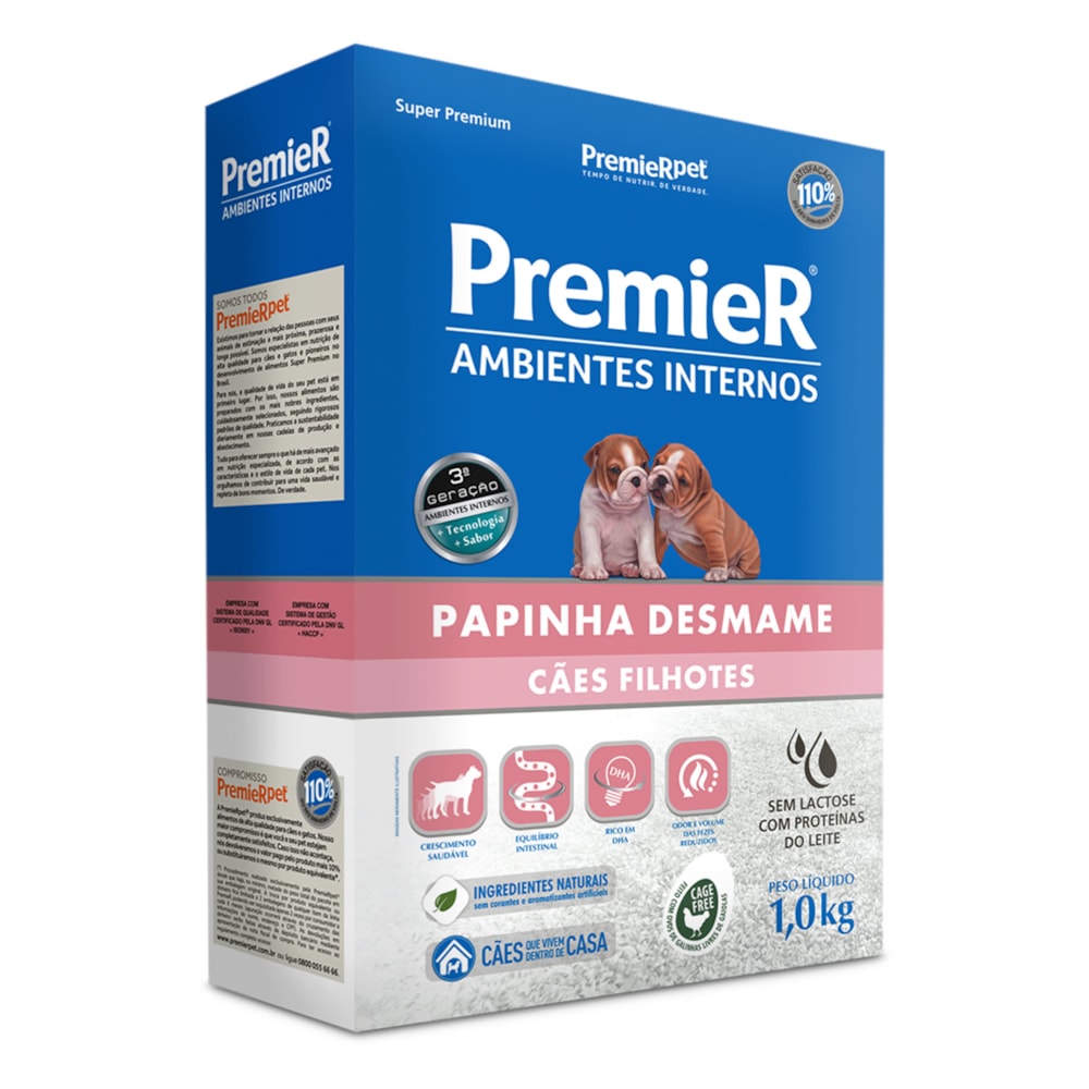 PremieR Ambientes Internos Papinha Desmame é um alimento Super Premium em pó que prepara seu filhote para receber uma alimentação sólida, sem que ele sinta a falta do leite materno.