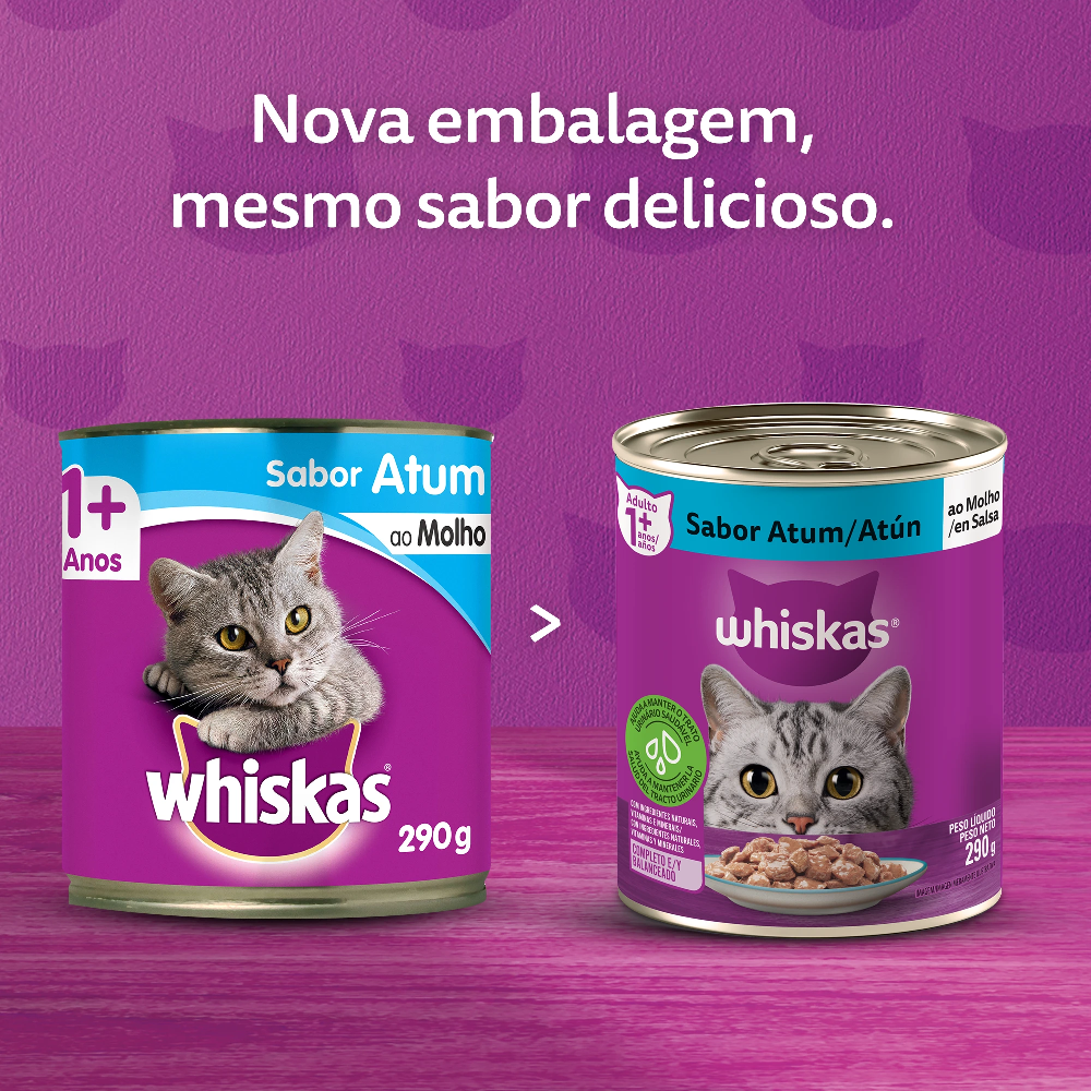 WHISKAS® Lata agora está com uma nova receita! O alimento que os gatos já amavam ficou ainda mais delicioso!