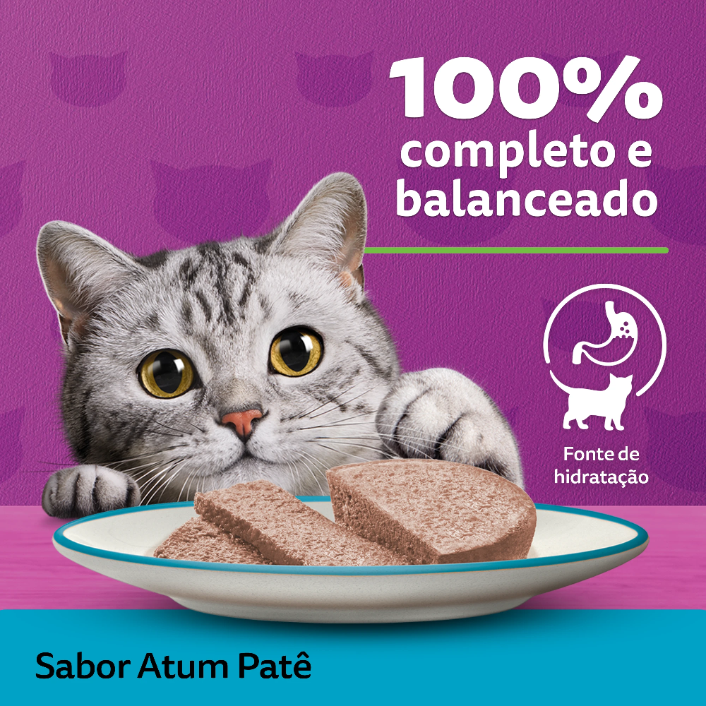 O Whiskas Patê Atum Lata (290g) é um alimento 100% completo e balanceado, perfeito para consumo diário, pois não possui aroma artificial e conservantes, proporcionando também ótima qualidade de fezes. Além disso, previne o felino de infecções urinárias.
