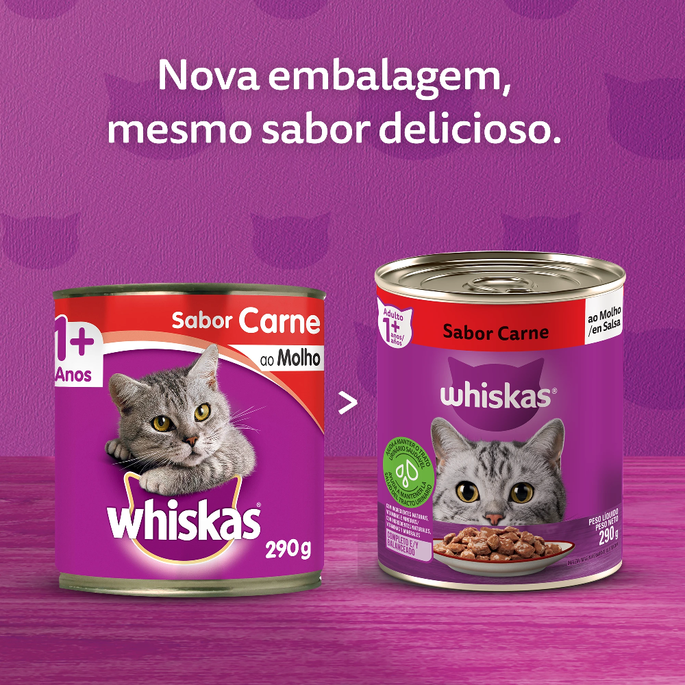 WHISKAS® Lata agora está com uma nova receita! O alimento que os gatos já amavam ficou ainda mais delicioso!