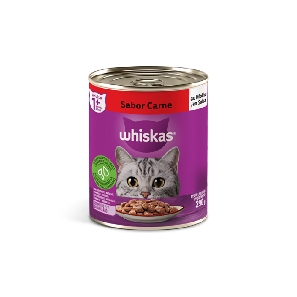 O Whiskas Pedaços de Carne ao Molho em Lata (290g) é um alimento 100% completo e balanceado, perfeito para consumo diário, pois não possui aroma artificial e conservantes, proporcionando também ótima qualidade de fezes. Além disso, previne o felino de infecções urinárias.