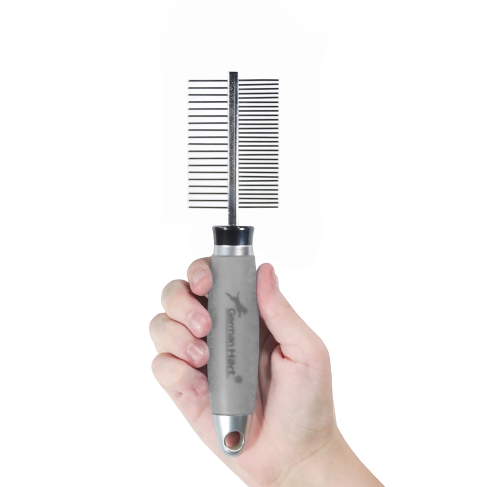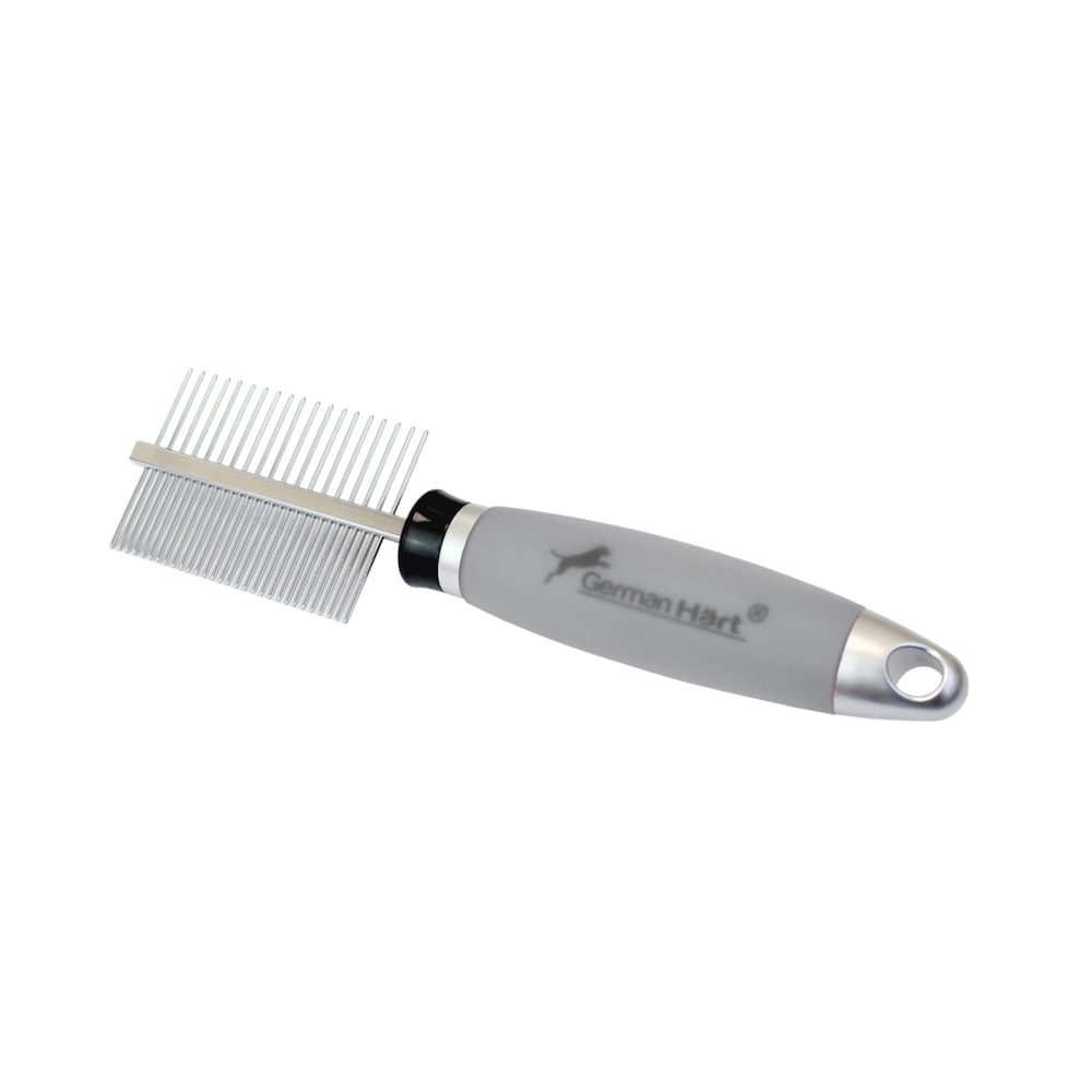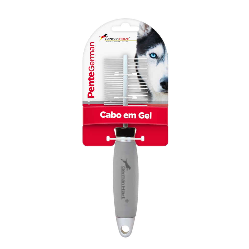 Transforme os cuidados com a pelagem do seu pet em momentos agradáveis e eficazes com o Pente Duplo Cabo Gel Cinza. Desenvolvido pela GermanHart Beauty Saloon, este pente é a combinação perfeita de funcionalidade e conforto para deixar seu companheiro peludo sempre com uma pelagem impecável.