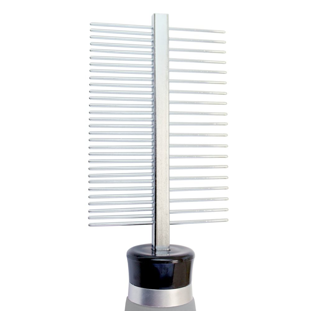 Diversidade em um só Pente: Equipado com dois sets diferentes de dentes, este pente oferece versatilidade para trabalhar toda a pelagem do seu pet. Os dentes mais grossos são ideais para a primeira penteada, desembaraçando e soltando o pelo, enquanto os mais finos garantem uma finalização suave, especialmente em áreas sensíveis.