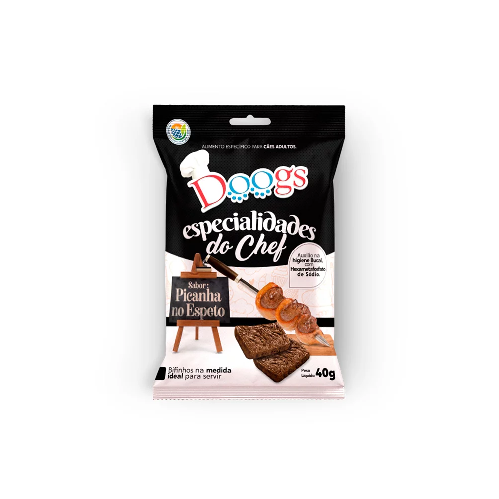 Doogs Bifinhos Especialidades do Chefe sabor Picanha é um petisco irresistível para seu cão, desenvolvido com todo cuidado e carinho para proporcionar uma experiência única de sabor e nutrição. Além de conter hexametafosfato de sódio que ajuda na saúde bucal, a linha de bifinhos Doogs é livre de transgênicos e enriquecida com ingredientes funcionais que proporcionam mais qualidade de vida ao seu pet. Doogs Bifinhos Especialidades do Chefe sabor Picanha é a escolha perfeita para demonstrar todo o seu amor e cuidado com o seu pet.