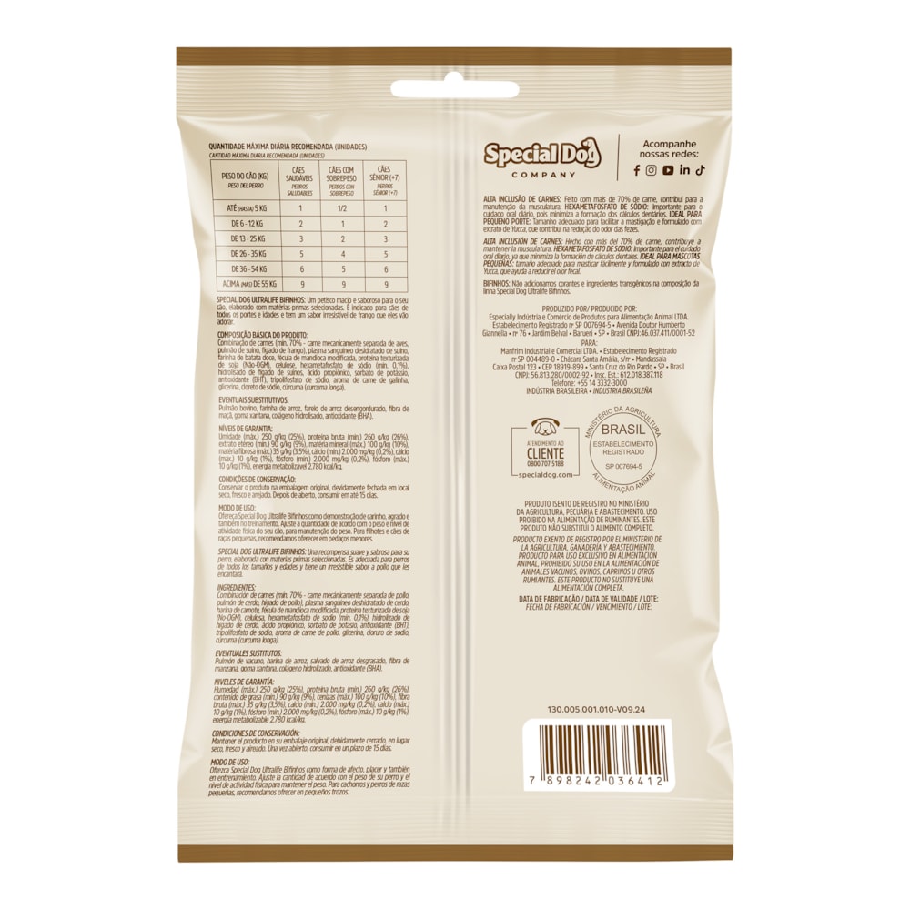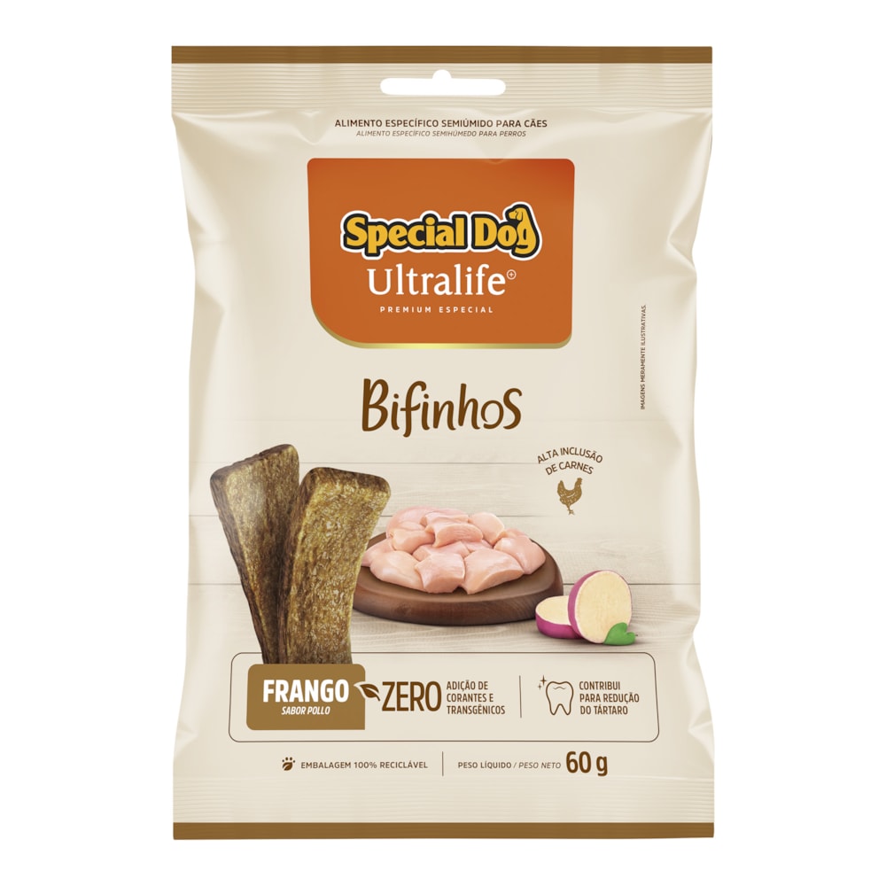 Os Bifinhos Special Dog Ultralife Carne foram desenvolvidos por veterinários para oferecer um petisco nutritivo, saboroso e seguro para o seu cão. Com alta inclusão de carnes (mín. 70%) e zero adição de corantes e transgênicos, é a escolha ideal para quem busca um mimo saudável e de qualidade premium para o pet.