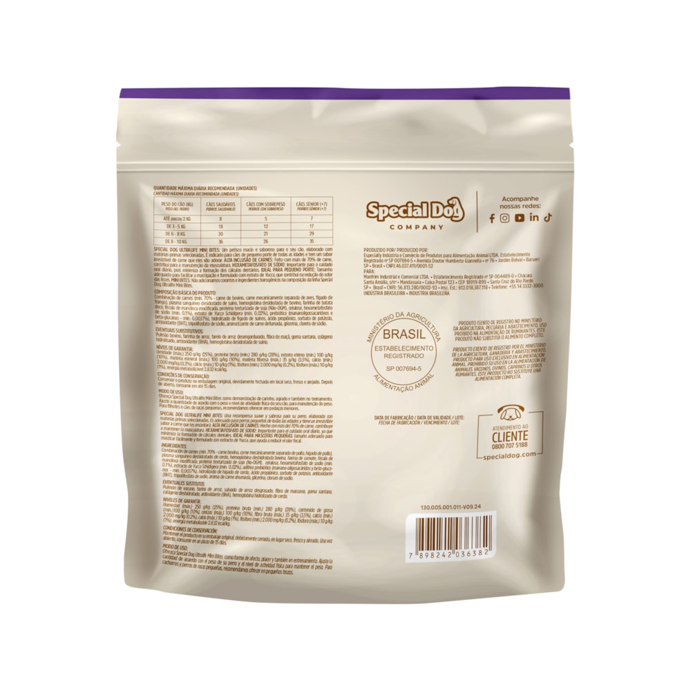Os Bifinhos Special Dog Ultralife Carne foram desenvolvidos por veterinários para oferecer um petisco nutritivo, saboroso e seguro para o seu cão. Com alta inclusão de carnes (mín. 70%) e zero adição de corantes e transgênicos, é a escolha ideal para quem busca um mimo saudável e de qualidade premium para o pet.
