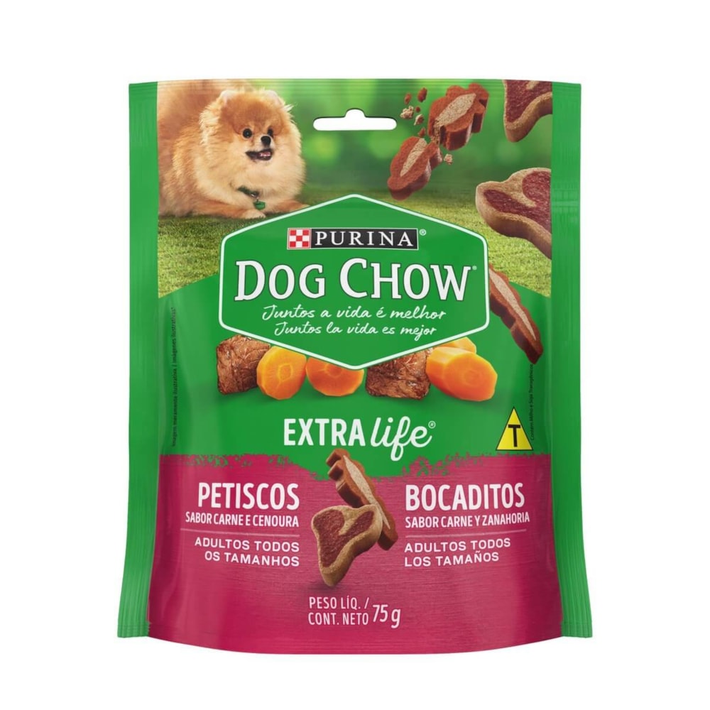 O Petisco Dog Chow Carinhos Mix de Carne e Cenoura são deliciosos petiscos com formatos divertidos, preparados com cuidado especial e uma rica combinação em um mix natural que seu cão vai adorar.