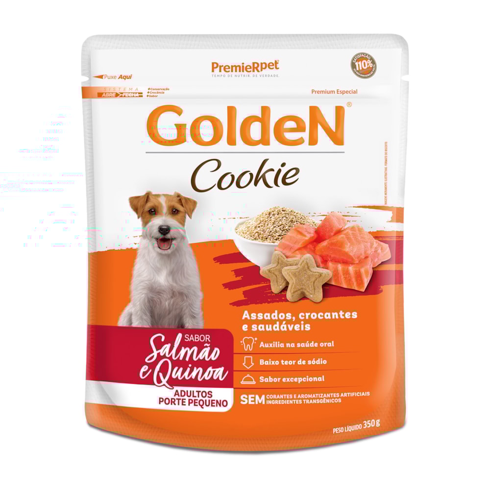 Para tornar os momentos mais divertidos e prazerosos junto ao seu cão, a PremieRpet® desenvolveu a linha GoldeN Cookie, resultado da perfeita combinação de qualidade e sabor, com cookies assados, crocantes e saudáveis. GoldeN Cookie é cuidadosamente preparado com ingredientes selecionados, contém baixo teor de sódio, sem corantes e aromatizantes artificiais e sem ingredientes transgênicos.