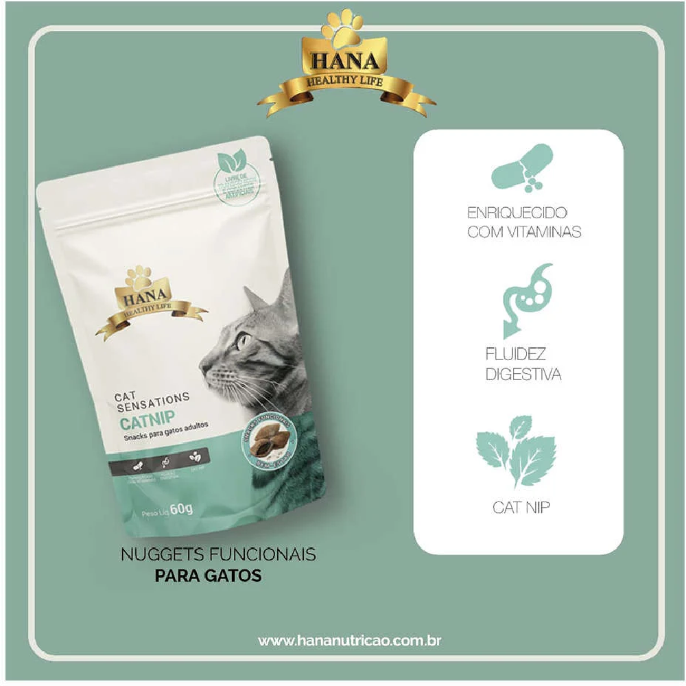 Os Hana Nuggets com Catnip Sensations são a escolha perfeita para proporcionar momentos de alegria e diversão para o seu gato. Com a combinação de sabor irresistível e a magia do catnip, esses petiscos farão a alegria do seu felino!