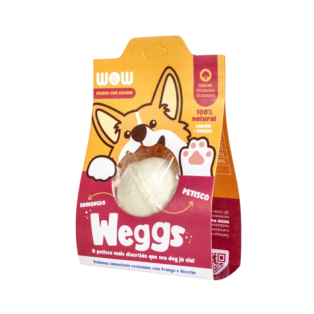 O Petisco Natural para cães Weggs sabor Frango com Alecrim da WOW Pet Food é uma opção divertida e saudável para o seu cãozinho.