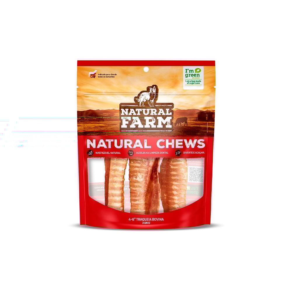 Petisco Natural Traqueia Bovina 4-6 Polegadas Natural Farm 3 Unidades (42 g)