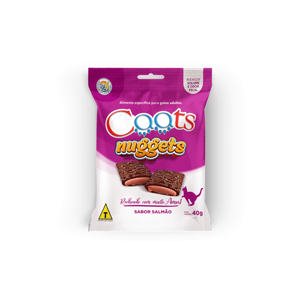 Caats Nuggets Salmão é um petisco para gatos adultos de todas as raças, desenvolvido com muito amor e carinho para o seu pet. Com ingredientes nobres e selecionados, é uma fonte de proteína de excelente qualidade que contribui para a manutenção da saúde e vitalidade do seu gato.