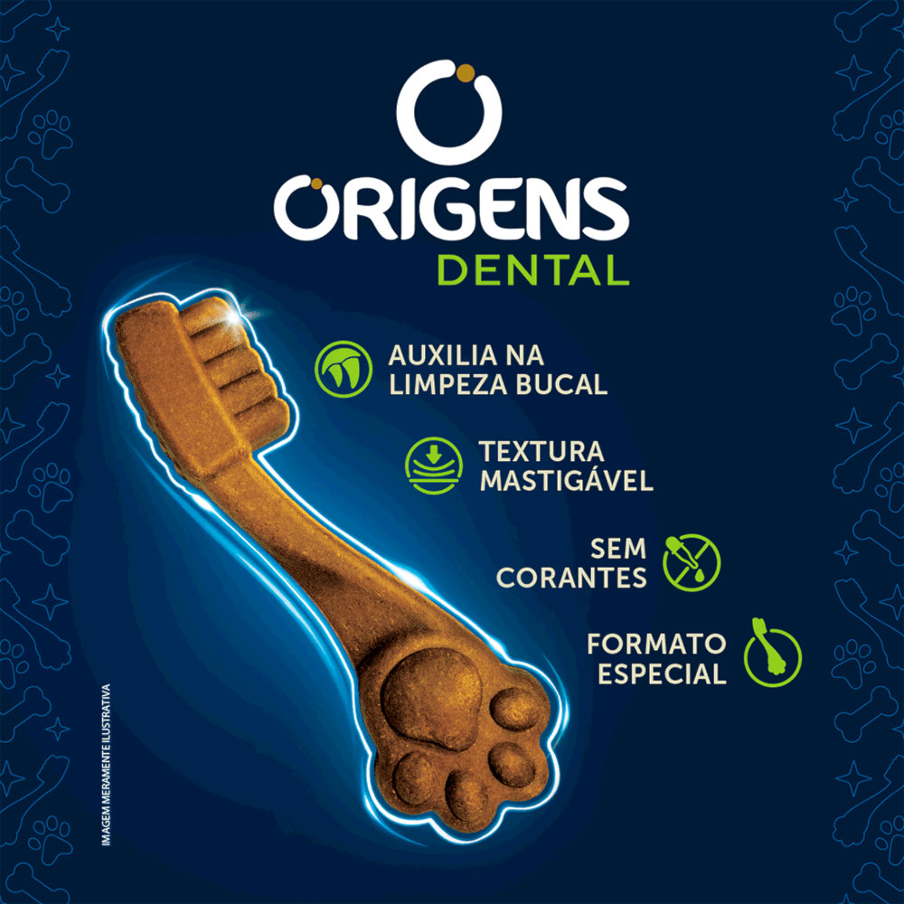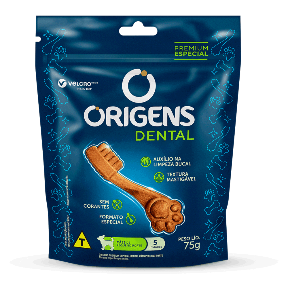 Origens Premium Especial Dental para Cães de Pequeno Porte é um petisco funcional desenvolvido para cuidar da saúde bucal dos cães com até 10 kg.