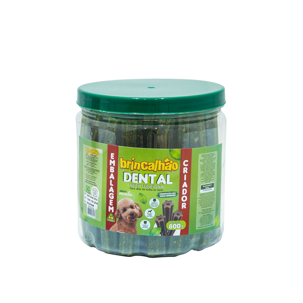 Descrição do produto O Petisco Sticks Brincalhão Pet Dental Sabor Menta é uma saborosa opção para cães de todas as raças, como auxiliador na higiene bucal são específicos para os cães de porte grande, que além de saboroso ele auxilia na higiene bucal, no combate ao acúmulo de tártaro e também para a refrescância do hálito.