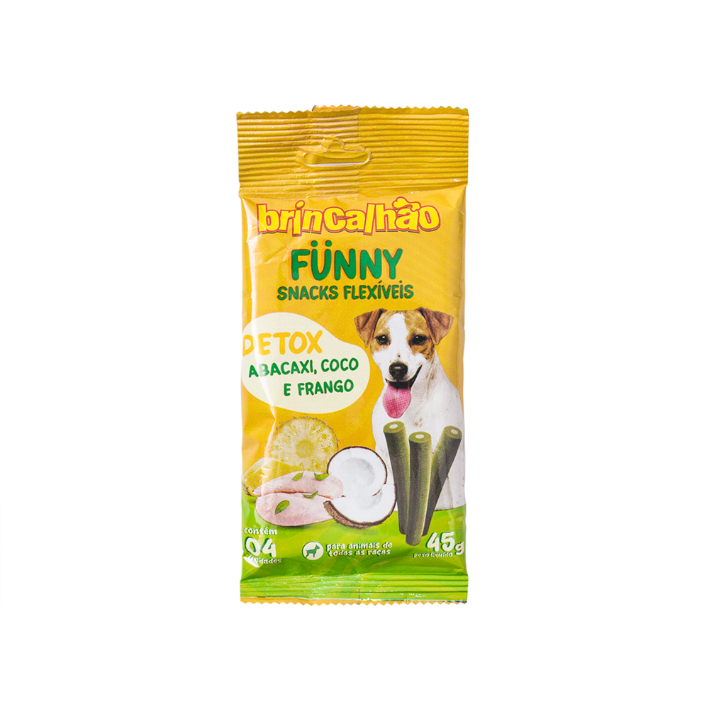 O Petisco para cachorro Brincalhão Pet Funny Detox é uma opção deliciosa e saudável para o seu pet. Com 45g, esse petisco é perfeito para recompensar o seu cachorro durante o treinamento ou como um agrado especial.