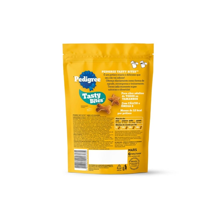 O Petisco Pedigree Tasty Bites Leite Delicioso foi desenvolvido para transformar cada momento de carinho em uma experiência ainda mais saborosa para o seu cão adulto. Com textura macia e formato divertido, esse snack semiúmido é como um biscoito assado em pequenos kibbles, perfeito para premiar, treinar ou simplesmente demonstrar afeto de forma especial.