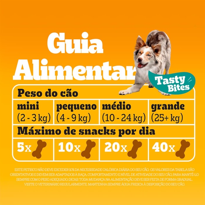 Apesar de pequenos, esses petiscos são grandes em sabor e nutrição: cada unidade possui menos de 12 kcal, permitindo recompensar seu cão com equilíbrio, sem exagerar nas calorias.
