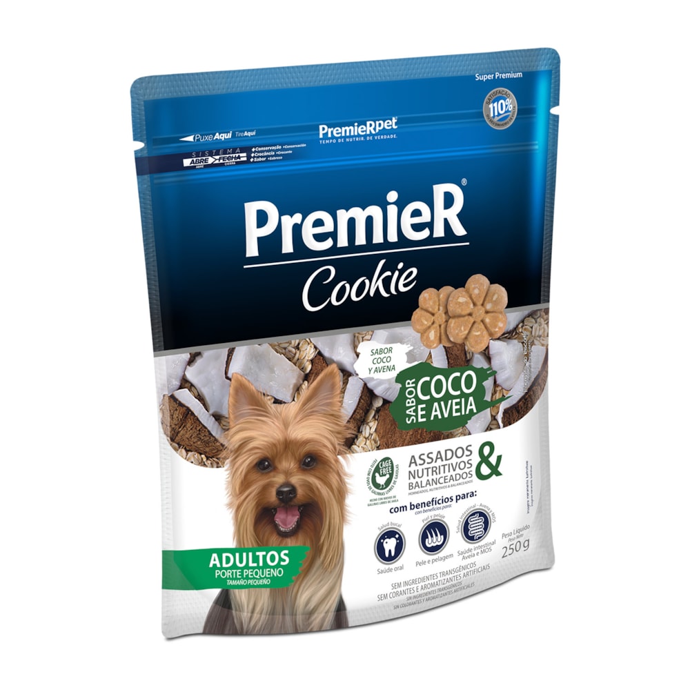 Para retribuir de forma divertida o amor incondicional e amizade que os cães nos oferecem, a PremieRpet criou o Petisco Premier Cookie para Cães Adultos de Raças Pequenas Sabor Coco e Aveia 250g, um biscoito que reúne qualidade, saúde e sabor, além de ser diferente de todos os produtos encontrados até hoje no mercado. É assado, saudável, nutritivo e possui ingredientes rigorosamente selecionados e satisfação comprovada.