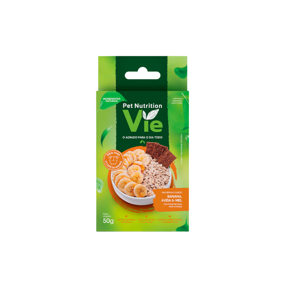 Desenvolvido por profissionais especializados em nutrição animal, o Snack Pet Nutrition Vie combina qualidade, sabor e cuidado com seu cão. Fabricado com ingredientes frescos e matéria-prima de excelente qualidade, esse petisco possui carne na composição para garantir a palatabilidade, além de uma deliciosa combinação de banana, mel e aveia para agradar até os paladares mais exigentes.