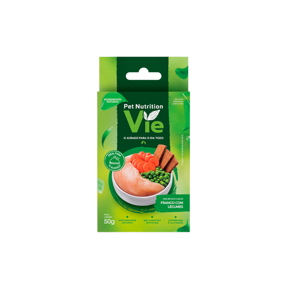 O Petisco Snack Pet Nutrition Vie sabor Frango com Legumes é uma opção nutritiva, funcional e deliciosa para o dia a dia do seu cão. Feito com peito de frango e ingredientes naturais como cenoura e ervilha, este mimo combina proteínas de qualidade, fibras e nutrientes que contribuem para a saúde e bem-estar dos pets.