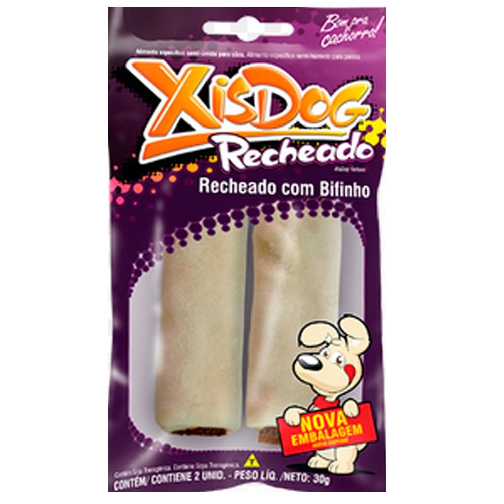 O Osso XisDog Recheado com Bifinho - 2 Unidades é um produto exclusivo. Foi desenvolvido a partir da integração das vísceras bovinas e do couro natural. É mais que um carinho. XisDog Bio é recomendado para cães de todas as raças e portes.