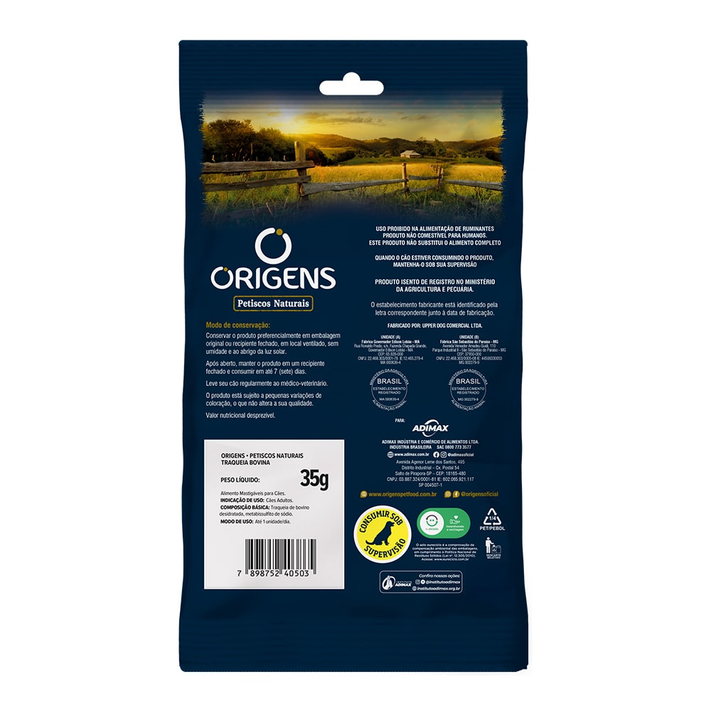 O Petiscos Naturais Origens para Cães Traquéia Bovina 35g é um petisco natural, feito com traquéia bovina desidratada, perfeito para cães que gostam de mastigar.