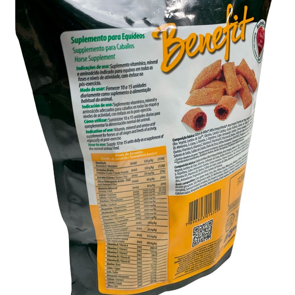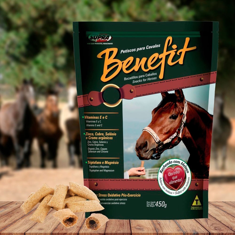 O Petisco Benefit Supra para Cavalos é elaborado com vitaminas, minerais e aminoácidos indicado para equinos em todas as fases e níveis de atividade, com ênfase no pós-exercício.