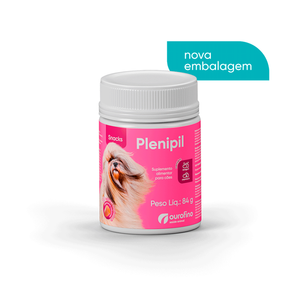 Plenipil Snacks é um suplemento alimentar funcional em formato de tablete mastigável, altamente palatável e de fácil administração. Sua fórmula exclusiva reúne nutrientes essenciais como Ômega 3 (EPA e DHA), Vitamina A, Biotina e Selênio, oferecendo suporte nutricional para cães de todas as idades e portes.