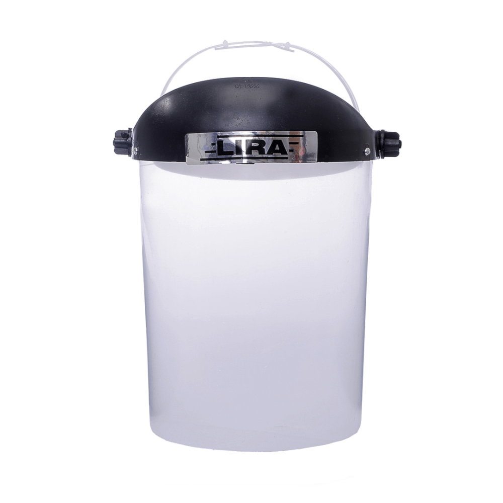 Viseira rígida em acrílico, cobre toda a região facial e tem faixas de fixação ajustáveis. Este modelo de protetor é adequado a todos os tipos de tarefas agrícolas e acompanha bem todos os produtos Lira, garantindo proteção até de detritos pesados, como pedras e pedaços de terra.