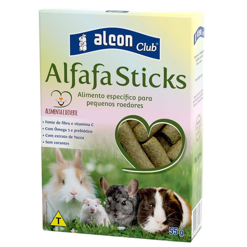 Alcon Club Alfafa Sticks é um alimento extrusado a base de alfafa, muito apreciado pelos pequenos roedores, como Hamster, Topolino, Gerbil, Porquinho da Índia e Chinchila, e também pelos Coelhos de estimação. Excelente fonte de fibra, importante nutriente para esses animais, também é rico em vitamina C e Ômega 3, além de prebiótico, que favorece o desenvolvimento da flora intestinal benéfica. Desempenha importante papel no desgaste dos dentes, que têm crescimento constante nesses animais. A presença de extrato de Yucca ajuda a reduzir o odor das fezes. Alimento produzido sem corantes.