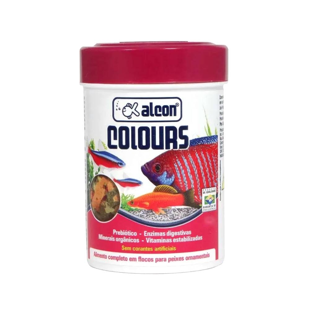 Alcon Colours foi desenvolvido para realçar as cores naturais e nutrir com qualidade os peixes ornamentais. Seus flocos combinam uma grande variedade de ingredientes selecionados. O carotenoide astaxantina estimula o realce das cores nos peixes tropicais e marinhos. Para maior biodisponibilidade dos minerais ao organismo dos peixes, possui em sua composição minerais orgânicos quelatados. Esta formulação especial também contém Enzimas Digestivas e Prebiótico, que favorecem o desenvolvimento da flora intestinal benéfica, melhorando o aproveitamento dos nutrientes. Não contém corantes artificiais. Para a manutenção adequada dos aquários utilize a linha de testes, condicionadores e corretivos Labcon.