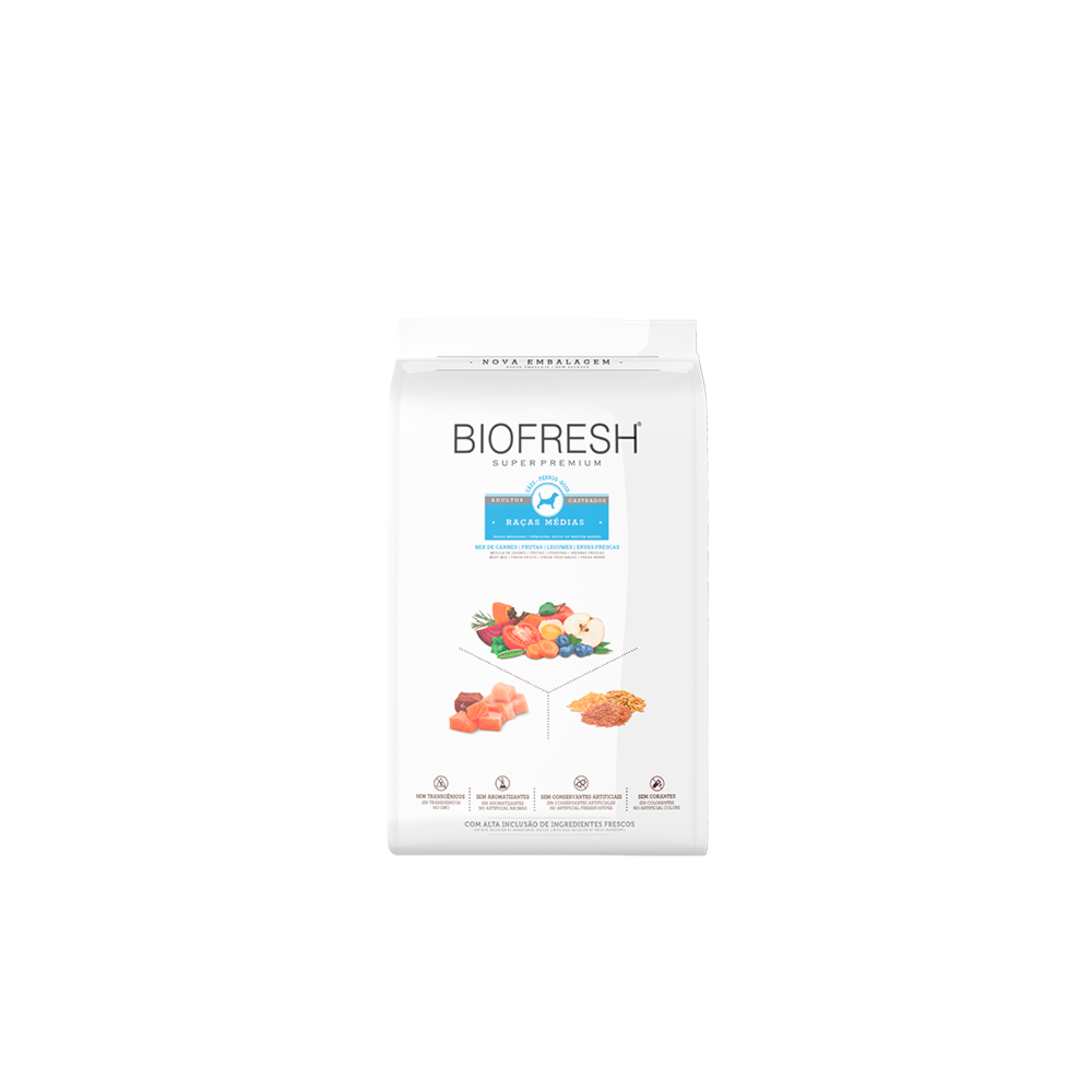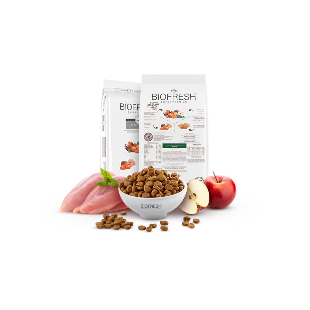 Composição Seleção de carnes frescas (filé de castanha, carne de frango e fígado de frango – fontes naturais de glicosamina) (mín. 15%), seleção de frutas, legumes e ervas frescas (beterrabas, cenouras, maçãs, mamões e orégano – fontes naturais de betacaroteno, vitaminas, minerais e fibras) (mín. 5%), polpa de tomate concentrada (fonte natural de licopeno), blueberry (mirtilo) em pó, ovo integral pasteurizado desidratado, óleo de peixe refinado (fonte natural de EPA e DHA), farinha de torresmo, sementes de linhaça, farinha de vísceras de frango e gordura de frango (preservados naturalmente com tocoferóis e extrato de alecrim), aveia, ervilhas desidratadas, arroz integral, quirera de arroz, grão de sorgo, fibra de cana de açúcar, polpa de beterraba, celulose em pó, prebióticos (parede celular de levedura (MOS – mín. 0,03%)), hidrolisado de fígado de frango e suíno, L-carnitina, taurina, sulfato de glicosamina, sulfato de condroitina, extrato de yucca, cloreto de sódio (sal comum), hexametafosfato de sódio (mín. 0,3%), DL-metionina, L-lisina, cloreto de potássio, cloreto de colina, vitaminas (A, B1, B2, B6, B12, C, D3, E, K3, H, niacina, ácido pantotênico, ácido fólico), minerais orgânicos (cobre aminoácido-quelato, ferro aminoácido-quelato, manganês aminoácido-quelato, zinco aminoácido-quelato, complexo selênio aminoácido), iodato de cálcio e antioxidantes naturais (extrato de chá verde, concentrado de tocoferóis, extrato de alecrim e ácido cítrico). Você já conhece a Agrosolo?Código de Barras 7908320400339