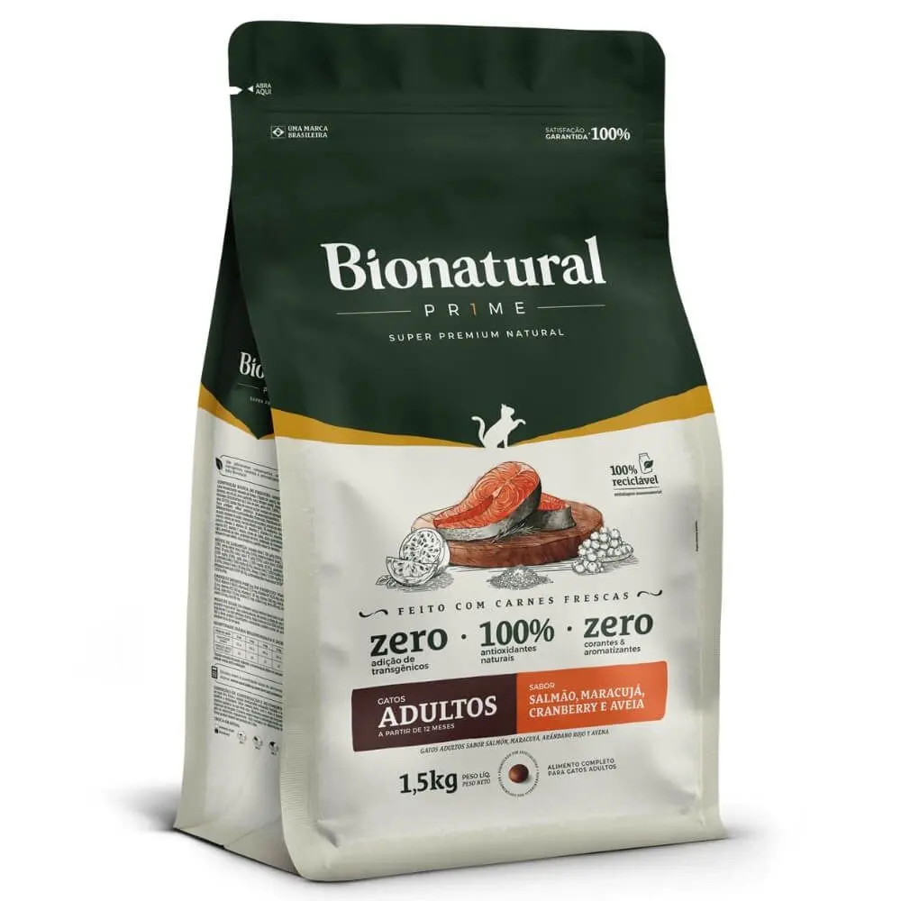 Farinha de salmão, carne fresca (mín. 3% - carne mecanicamente separada de frango e fígado de suínos), farinha de vísceras de aves, farinha de torresmo, ovo em pó, arroz quebrado, sorgo integral moído, ômega 3 [óleo de peixes e biomassa de microalgas (Schizochytrium sp.)], óleo de aves, aveia (mín. 3,95%), maracujá (mín. 0,015%), cranberry (mín. 0,015%), laranja, fibra de cana-de-açúcar, levedura de cervejaria inativada desidratada, extrato de Yucca schidigera, aditivo prebiótico (mananoligossacarídeos 0,006%), aditivos probióticos (Bifidobacterium lactis e Lacticaseibacillus rhamnosus), hidrolisado de fígado de suínos, hexametafosfato de sódio, regulador de acidez, concentrado de tocoferol, extrato de alecrim, extrato de chá verde (Camellia sinensis), extrato de menta, hortelã (Mentha spp.), DL-metionina, taurina, cloreto de sódio, cloreto de potássio, vitamina A, vitamina D3, vitamina E, vitamina K3, vitamina B1, vitamina B2, vitamina B6, vitamina B12, vitamina C, niacina, cloreto de colina, ácido pantotênico, ácido fólico, biotina, iodato de cálcio, proteinato de cobre, proteinato de ferro, proteinato de manganês, proteinato de zinco, levedura enriquecida com selênio, ácido propiônico, parede celular de levedura.