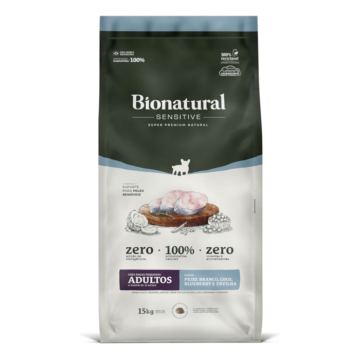 A Ração Bionatural Sensitive Peixe Branco foi especialmente desenvolvida para cães adultos de raças pequenas com pele sensível ou digestão delicada. Com ingredientes naturais, proteínas selecionadas e nutrientes funcionais, ela oferece nutrição completa, equilibrada e de alta digestibilidade para garantir saúde, bem-estar e vitalidade ao seu pet.