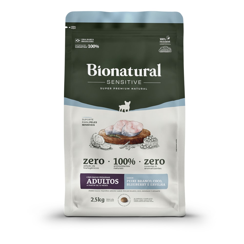 A Ração Bionatural Sensitive Peixe Branco foi especialmente desenvolvida para cães adultos de raças pequenas com pele sensível ou digestão delicada. Com ingredientes naturais, proteínas selecionadas e nutrientes funcionais, ela oferece nutrição completa, equilibrada e de alta digestibilidade para garantir saúde, bem-estar e vitalidade ao seu pet.