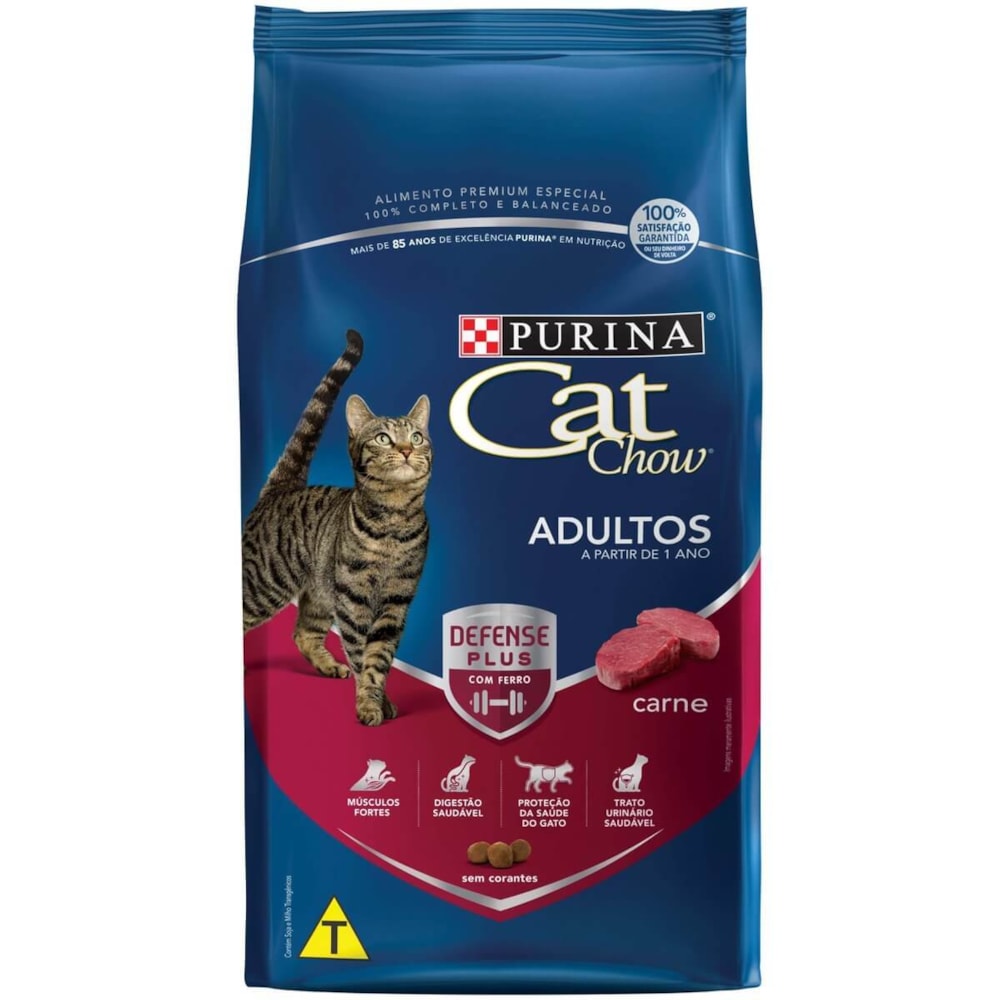 PURINA® CAT CHOW® ADULTOS CARNE com Defense Plus oferece os nutrientes de que seu gato necessita para se manter saudável e forte. Contém ferro para ajudar a manter os músculos fortes.