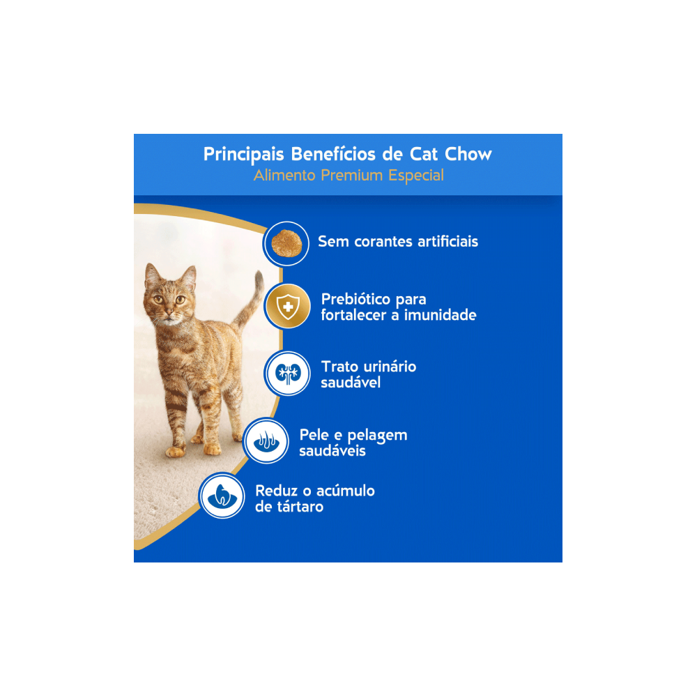 Com a Ração Cat Chow para Gatos Adultos Sabor Carne, você oferece ao seu felino uma vida mais saudável e feliz!