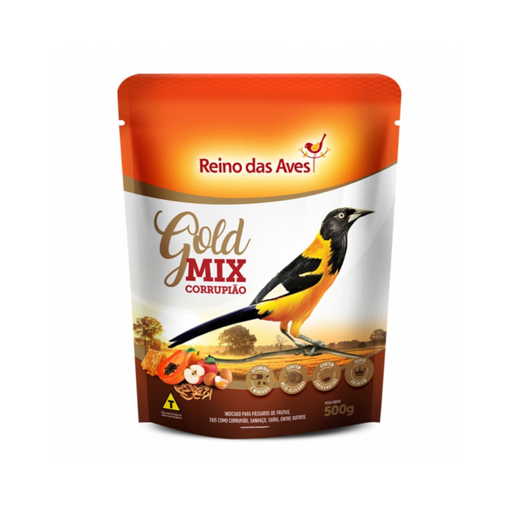 ImportanteExperimente hoje mesmo a Ração Corrupião Gold Mix Reino das Aves 500g e veja seu corrupião cantar de alegria!