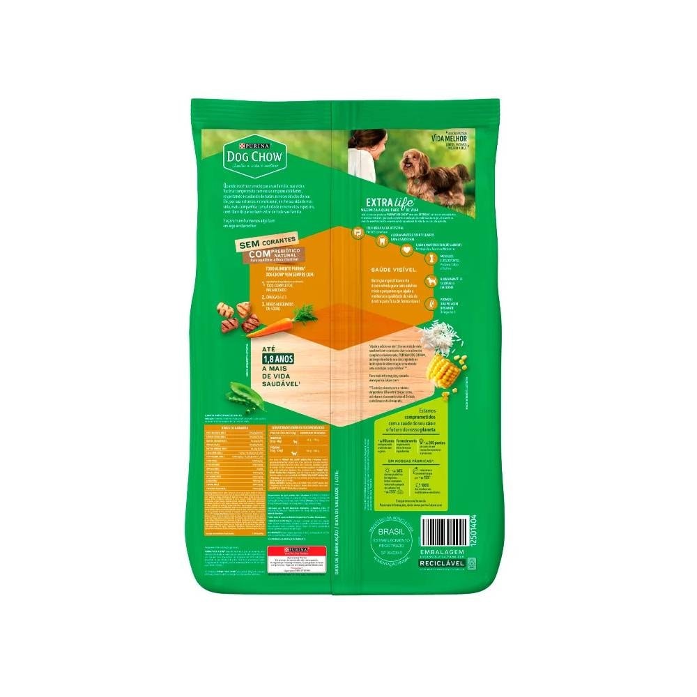 A Ração PURINA® DOG CHOW® proporciona uma boa digestão ao seu cão, com nutrientes e ingredientes de alta qualidade. Todos os produtos agora apresentam ExtraLife®, um mix de antioxidantes, vitaminas e minerais, que ajuda a maximizar a qualidade de vida do seu cão dia após dia. Sabemos que seu pet é um membro especial da família e, por essa razão, nós nos importamos com a sua saúde, cuidado e bem-estar. 100% completo e balanceado, um alimento com multivitaminas e minerais, nutrientes essenciais para o bom funcionamento do metabolismo e que auxiliam o seu pet a ter saúde e vitalidade por muito tempo.